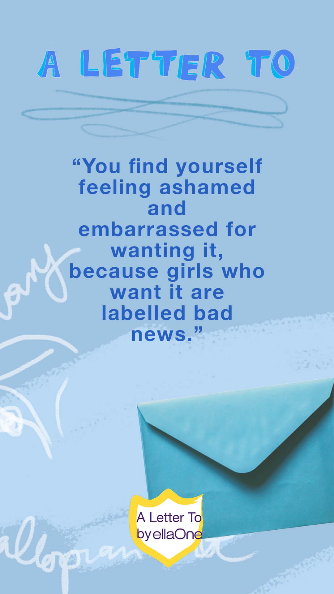 Later these mixed messages leave you wanting to experience it for yourself. How did it feel to have sex, and why was it such a taboo? What does it feel like? The only pressure you feel to have your first sexual experiences are actually from yourself – despite always being told that as a girl you’d be pressured into it by a boy! You find yourself feeling ashamed and embarrassed for wanting it, because girls who want it are labelled bad news. Still, you become desperate to experience the feelings of attraction, anticipation, and orgasm.