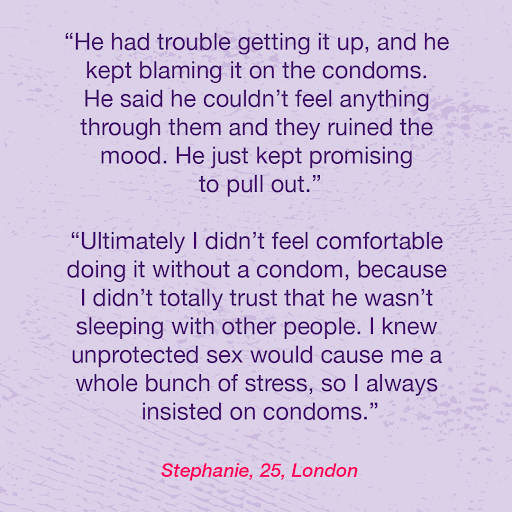 Stephanie, a 25-year-old writer from London, dated someone who spent over a year complaining about rubbering up.