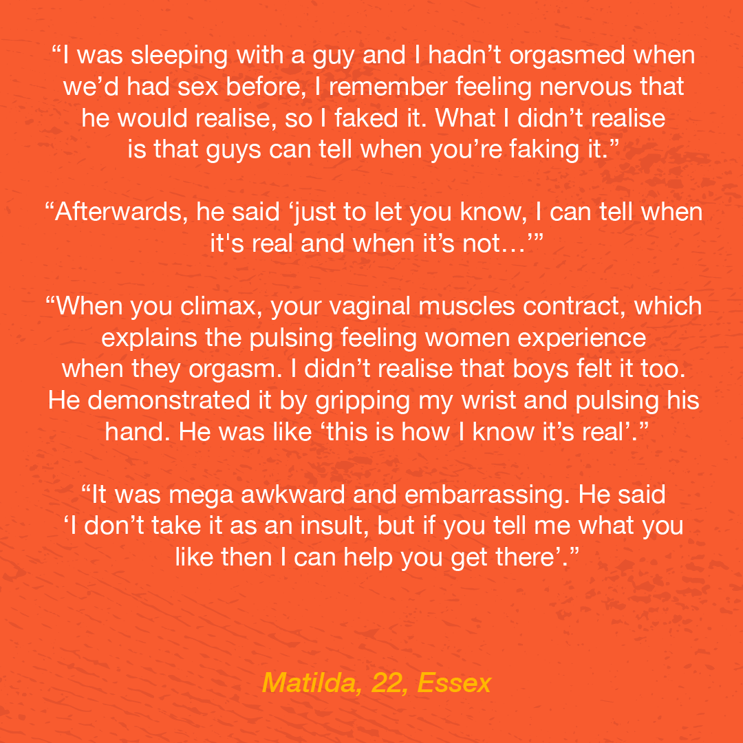 Matilda, a 22-year-old psychologist from Essex, got caught faking it.